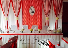 Наша студия свадебного декора готова прийти к Вам на помощь и воплотить Ваши задумки в реальность. Наши декораторы всегда внимательно выслушают и помогут определиться с оформлением свадебного зала. Для украшения свадебного зала используем разнообразные по качеству и текстуре ткани и аксессуары, предметы ручной работы, живые и искусственные цветы, создаем индивидуальные эскизы оформления.