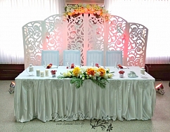При выборе декора учитываем все нюансы и пожелания заказчиков, не оставляя без внимания дизайн помещения, архитектурные особенности залов. Ведь основной задачей декоратора является создание атмосферы сказки, уюта, чтобы молодоженам и гостям было комфортно проводить время в украшенном банкетном зале.