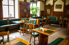 На банкете в «Раковском Броваре» можно собраться компанией до 250 человек, а если это фуршет, то и до 550. По договоренности с клиентом возможны любые варианты перестановки столов и украшения зала. Найдется место и под танцпол.