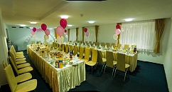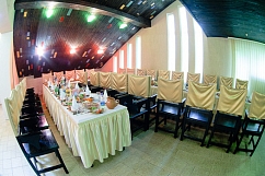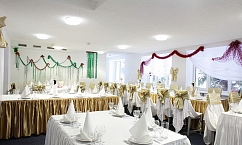 Вы можете составить свое собственное меню и заказать все, что считаете необходимым для вашего мероприятия. Здесь исполнят любой каприз. Вам не придется думать о сервировке и обслуживании, предоставьте все это команде профессионалов. При заказе банкета (в зависимости от суммы) возможно дополнительное украшение зала, доставка автобусом туда-обратно, а также специальное предложение для молодоженов ― номер в гостинице.