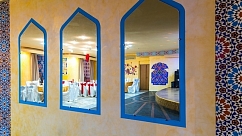 В вашем достойном отдыхе далеко не последнюю роль играет соответствующая обстановка. «Астара» поможет гостям погрузиться в сладкую и загадочную атмосферу Востока, ведь здесь соответствующий стиль интерьера и элементы декора: богатые шторы и стены, украшенные орнаментом, лепкой и камнями.
