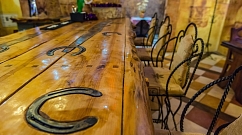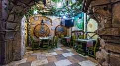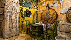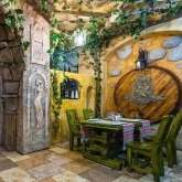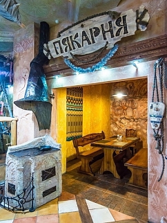 2.Стоит отметить, что тут три разноплановых зала, поэтому, заказывая зал на корпоратив, Вы можете выбирать то, что будет по душе. Первый зал — белорусский. Там можно увидеть обилие деревянной мебели, которая придает свой шарм этому залу. Здесь также имеется две VIP-комнаты: «Пякарня» и «Коўня». Они рассчитаны на 4–6 человек, поэтому это очень уютное место для того, чтобы собраться друзьями. Второй зал значительно отличается, потому что там атмосфера небольших городков, где были небольшие улочки. И третий зал — болгарский, название которого говорит само за себя. На потолке — виноградник, в стены встроены бочки с вином.