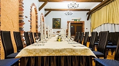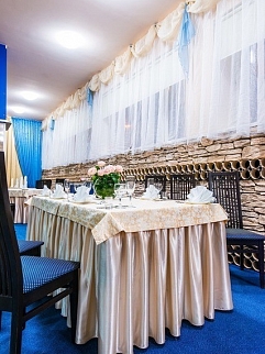 При условии проведения торжества в ресторане гостиницы предоставляется 50%-ая скидка на комфортабельные номера для новобрачных, а также бесплатная парковка для молодожёнов и гостей.