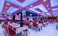 Уютный зал ресторана, выполненный в теплых персиковых тонах с геометрическими абстракциями на стенах готов открыть свои двери всем, кто любит красивый и комфортный отдых.