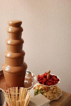 Шоколадный фонтан можно заказать на любое мероприятие: детский праздник, свадьбу, юбилей, выпускной вечер, корпоративный банкет. Шоколадный фонтан можно использовать и на большом празднике, и на романтическом свидании для двоих.