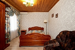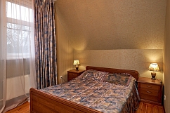 Большой дом усадьбы сможет разместить до 16 гостей. Здесь имеется 5 комфортабельных номеров для проживания: один 2х комнатный и ещё 4е однокомнатных. В каждом номере есть большая двуспальная кровать, шкаф, туалет и умывальник В каждом номере дополнительно установлена либо кресло-кровать, либо диван. На первом этаже дома находится оборудованная всеми необходимыми бытовыми приборами кухня. В доме есть два зала, каминный зал рассчитанный на 20 человек, оборудованный музыкальным центром, телевизором, камином на дровах и банкетный зал вместимостью до 100 чел, оборудованный профессиональной музыкальной аппаратурой, светомузыкой. Второй жилой дом вместимостью до 14 человек включает в себя 5 номеров (2 номера с двухспальными кроватями и 3 номера по 3 односпальные кровати в каждом. Так же номера в зависимости от типа номера в обеих домах включают в себя либо диваны ,либо кресла кровати.