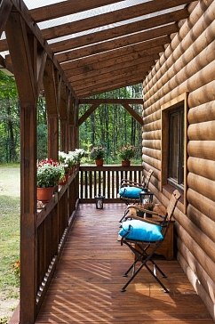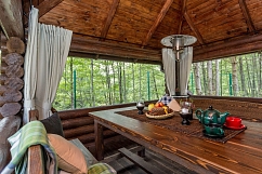 В центре комплекса находится дом, интерьерной изюминкой которого является стиль шале.Самобытность деревянного дома отлично дополняется простой и в то же время актуальный интерьер. В нем доминируют предметы из натуральных материалов. Они создают атмосферу настоящего уюта и тепла.